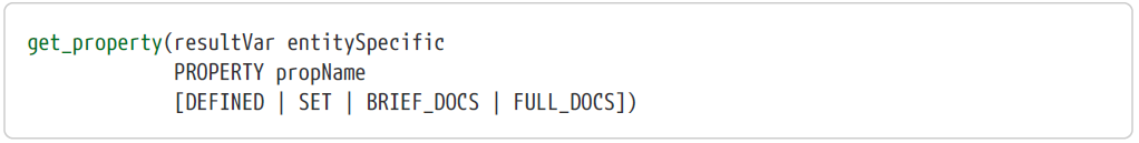 get_target_property() 커맨드는 get_property()의 단순화된 버전입니다. Target 속성의 값을 가져오는 간단한 방법을 제공하는데 중점을 두고 있으며, 기본적으로 get_property() 커맨드의 축약형 버전이라고 할 수 있습니다.