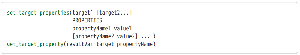 다른 속성과 마찬가지로 편의성을 위해 set_target_properties()와 get_target_property() 커맨드를 제공합니다.