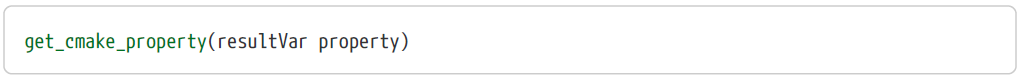 일반적인 set_property()와 get_property() 이외에도 CMake에서는 Global entity를 쿼리하기 위해 get_cmake_property()를 제공합니다. 이는 get_property()에 GLOBAL entity를 사용하는 단축 명령어이며, Global 속성을 검색하는데 간단히 사용할 수 있습니다.