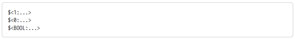 '$<BOOL:...>' 표현식은 BOOL 자리에 오는 값이 CMake에서 false로 인식되는 것이라면 0과 동일하게 처리되고, true로 인식되면 1과 동일하게 처리됩니다.