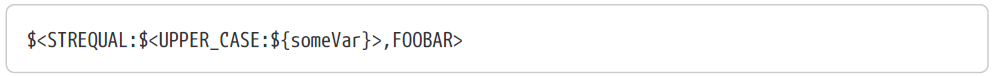 - $<LOWER_CASE:...>, $<UPPER_CASE:...> : '...'을 모두 소문자나 대문자로 변환할 수 있습니다. 이는 아래 예시처럼 문자열 비교를 수행하기 전 단계에 유용하게 사용될 수 있습니다.