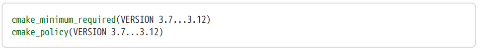 CMake 3.12에서는 단일 버전이 아닌 버전 범위를 지정하여 이전 버전과 호환되도록 할 수 있습니다. 범위는 공백없이 최소 버전과 최대 버전 사이에 3개의 점(...)을 사용하여 지정됩니다.
