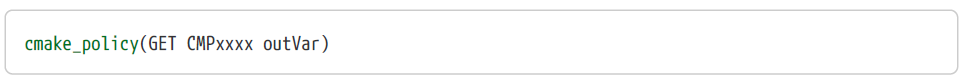 특정 policy의 현재 상태를 얻을 수도 있습니다. 현재 policy 설정을 읽어야 하는 대부분의 경우는 CMake 자체 또는 프로젝트에서 제공하는 모듈 파일에 있습니다. 프로젝트에서 정책 설정에 따라 동작을 변경하는 것은 거의 없다고 볼 수 있습니다.