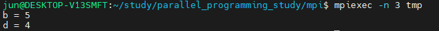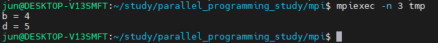 그렇다면, 어떤 프로세스의 호출 순서로 매칭을 결정하는가를 살펴봤습니다. MPI_Reduce의 dest_process를 1로 변경하고, 22 line의 if(my_rank == 0)을 if(my_rank == 1)로 변경하여 다시 컴파일하고 실행해봤습니다.