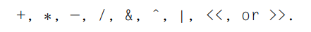 여기서 <op>는 다음의 이진 연산자 중의 하나가 되어야 합니다.