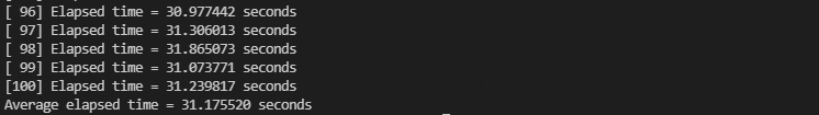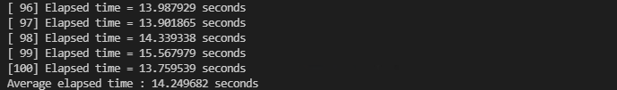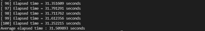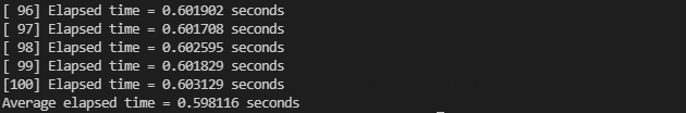 printf("Average elapsed time : %.6f seconds\n", avg_elapsed);