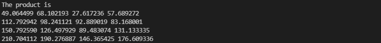 Print_matrix(C, m, k, "The product is");