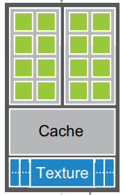GPU는 고도로 스레드화 되어있는 스트리밍 멀티프로세서(Streaming Multiprocessors: SMs)의 배열로 구성되어 있습니다. 아래 이미지에는 2개의 SM이 빌딩 블록(building block)을 구성하고 있는 모습입니다. 이 빌딩 블록을 구성하는 SM의 수는 GPU 세대마다 다릅니다.