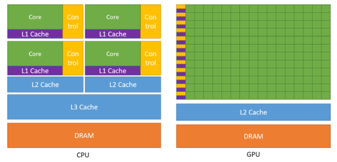 반면에 CPU는 단일 스레드의 실행 지연 시간을 최소화하도록 설계되었고, 이러한 디자인 스타일을 일반적으로 latency-oriented design이라고 합니다.