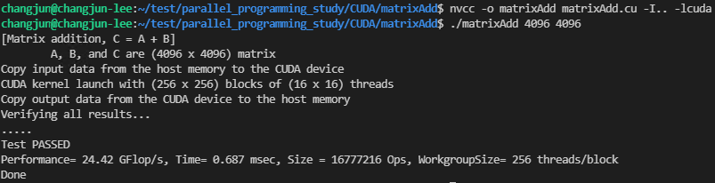 Matrix Addition 전체 코드는 아래 링크를 참조하시기 바랍니다. 코드는 NVIDIA에서 제공되는 샘플을 참고하여 작성하였습니다.