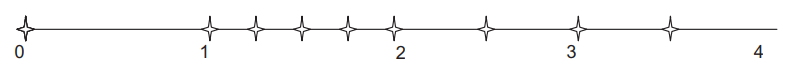 첫번째, 지수 비트가 표현 가능한 수들의 주요 간격(major interval)을 정의합니다. 여기서 지수가 두 개의 비트로 구성되기 때문에 0일 기준으로 3개의 주요 간격들이 존재합니다. 그 간격들은 2의 승수 사이가 됩니다. 두 개의 지수 비트를 사용하면 3개의 2의 승수(\(2^{-1}=0.5_D, 2^0=1.0_D, 2^1=2.0_D\)가 존재하고, 각각은 표현 가능한 수에서 간격의 시작점이 됩니다.
