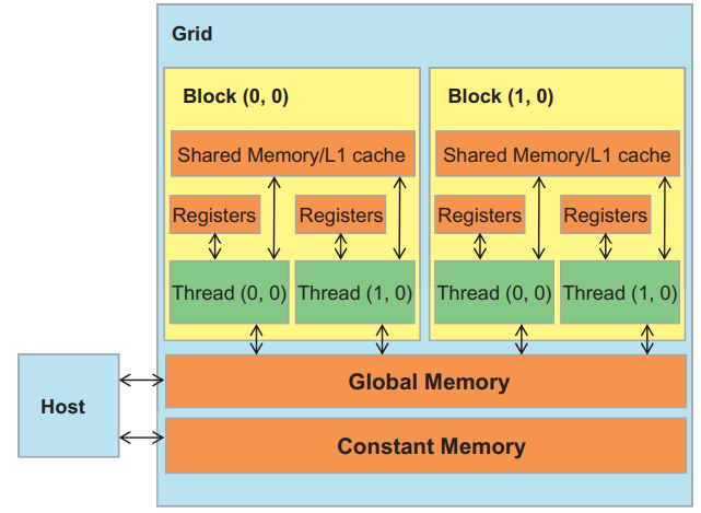 아래 이미지는 CUDA 디바이스의 메모리 모델입니다.