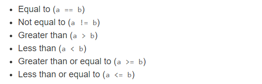 Swift는 위와 같은 비교 연산자들을 지원합니다. 객체를 비교하기 위한 '==='과 '!=='도 지원합니다.