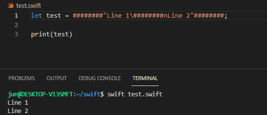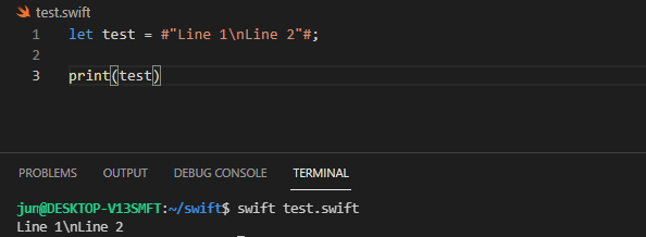 예를 들어, #"Line 1\nLin2"# 을 출력해보면, 문자열이 두 줄로 출력되지 않고 이스케이프 문자가 그대로 출력됩니다.