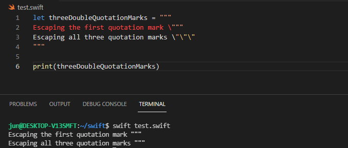확장된 구분자(extended delimiters)를 사용하여 특수 문자(ex, 이스케이프 문자)를 문자열에 포함시킬 수 있습니다. 문자열을 큰따옴표(") 내에 위치시키고 숫자 기호(#)으로 또 한번 둘러쌉니다.