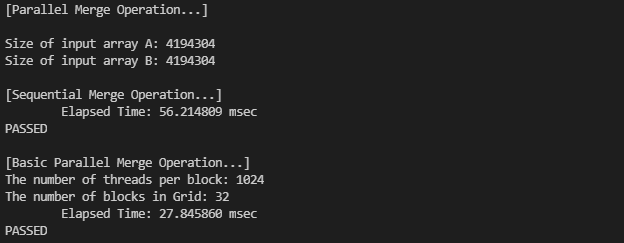 완벽한 커널 함수를 구현하고 싶었으나, 아직 많이 부족한 관계로 일단 책에 제공해주는 커널 함수를 사용했습니다만 기회가 된다면 완전한 Merge Sort를 구현해보도록 하겠습니다!