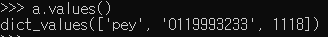 a.values()를 사용하며, dict_values 객체를 반환합니다다.