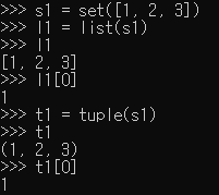 만약 인덱스로 접근하려면, 리스트나 튜플로 변환 후에 해야 합니다.