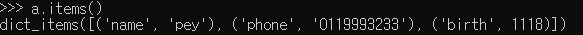a.items()를 사용하며, dict_items 객체를 반환합니다.