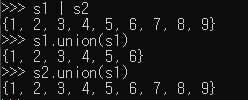 '|' 기호를 사용하거나 union 메서드를 사용해서 합집합을 구할 수 있습니다.