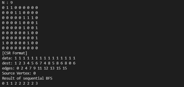 커널 함수로 BFS를 수행하면, sequential BFS와 동일한 결과를 얻을 수 있습니다.