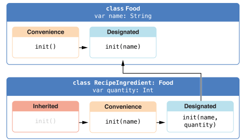 두 이니셜라이저는 각 이니셜라이저의 파라미터를 사용하여 새로운 Color 인스턴스를 만드는데 사용됩니다.