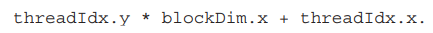 예를 들어, 2D의 스레드 블록이 주어진 경우, 블록의 각 스레드에 대한 고유한 식별자는 내장된 threadIdx와 blockDim 변수를 통해 계산할 수 있습니다.