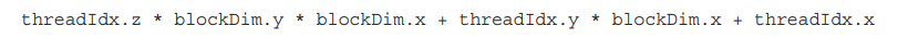 2차원 또는 3차원 스레드 블록의 논리적 레이아웃은 x 차원을 가장 안쪽의 차원, y 차원을 두 번째 차원, z 차원을 가장 바깥쪽의 차원으로 사용하여 1차원 물리적 레이아웃으로 변환할 수 있습니다.