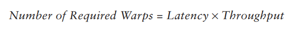 이러한 latency를 감추기 위해 필요한 active warp의 수를 측정하는 방법은 Little's Law를 통해 근사적으로 알 수 있습니다.