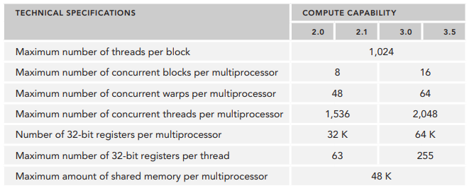 사용 가능한 리소스는 일반적으로 SM당 상주하는 스레드 블록의 수에 따라 제한됩니다. SM당 레지스터의 수와 공유 메모리의 크기는 디바이스마다 다릅니다. 만약 각 SM에 적어도 하나의 블록을 처리하기에 충분한 레지스터나 공유 메모리가 없다면, 커널 launch는 실패할 것입니다.