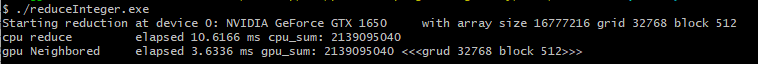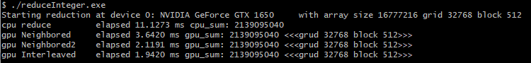 https://github.com/junstar92/parallel_programming_study/blob/master/CUDA/reduction/reduceInteger.cu