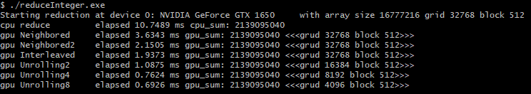 reduceUnrolling4와 reduceUnrolling8은 github 코드에서 확인하실 수 있습니다.