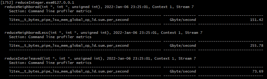 ncu.bat --metrics dram__bytes_read.sum.per_second ./reduceInteger.exe