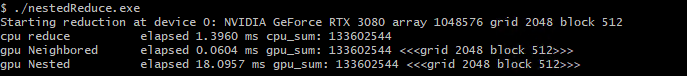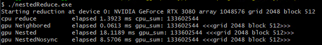 https://github.com/junstar92/parallel_programming_study/blob/master/CUDA/reduction/nestedReduce.cu