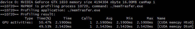 컴파일 후에, nvprof로 프로파일링을 수행해보겠습니다.
