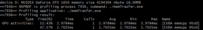 pageable host memory가 아닌 pinned host memory를 사용하면 성능의 향상이 얼마나 되는지 직접 확인해보겠습니다.