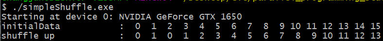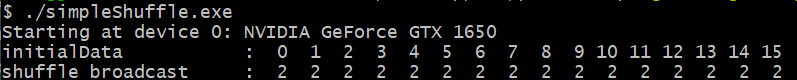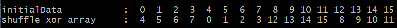 오른쪽으로 shift된 결과를 얻을 수 있으며, 마찬가지로 test_shfl_up 커널의 결과와는 다르게 왼쪽 끝의 lane들도 값이 변경되었습니다.