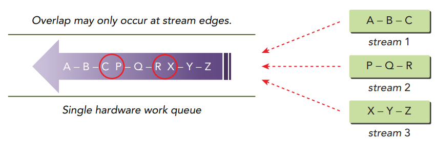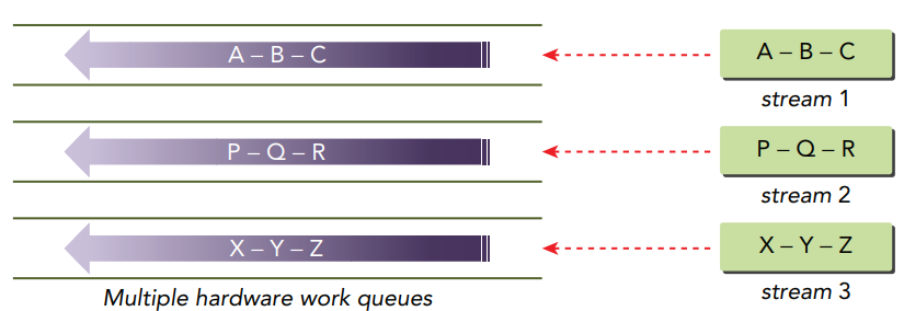 아래 그림은 3개의 work queue에 3개의 스트림이 있는 예제 케이스를 보여줍니다.