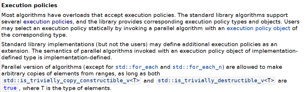 execution policy에 따라 거의 모든 알고리즘을 실행할 수 있습니다. 알고리즘은 원소 또는 원소 범위(range)에 대해 동작하며, 범위는 시작 지점을 가리키는 시작 반복자(begin iterator)와 끝 지점을 지정하는 끝 반복자(end iterator)로 지정합니다. 참고로 end iterator는 범위의 끝에 해당하는 원소가 아니라 그 다음 지점을 가리킨다는 점에 주의해야합니다.