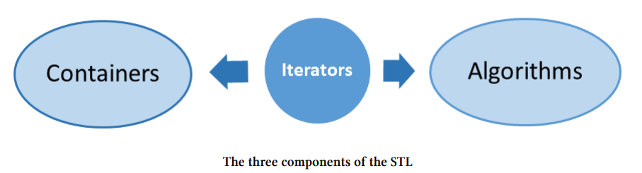 이 요소는 컨테이너(Containers), 컨테이너에서 실행되는 알고리즘(Algorithms), 그리고 컨테이너와 알고리즘을 연결해주는 반복자(Iterators)입니다. 이렇게 추상화된 제너릭 프로그래밍(generic programming)을 통해 알고리즘과 컨테이너를 고유한 방식으로 결합할 수 있습니다. 단지 컨테이너의 원소에 대해서 최소한의 요구사항만을 지키면 됩니다.