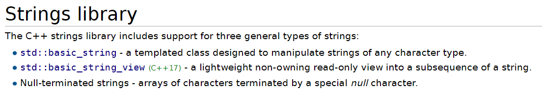 C++에서는 텍스트 처리를 위한 String과 정규 표현식(regex expressions)에 관련된 강력한 두 가지 라이브러리를 제공합니다.