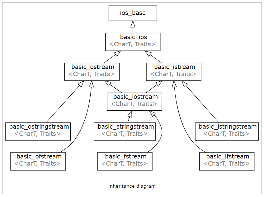 스트림 클래스는 클래스 계층 구조가 정교합니다. 그중에서 두 가지 클래스가 중요한데, 하나는 스트링 스트림(string stream)이며 string과 stream 간의 상호 작용하도록 할 수 있습니다. 다른 하나는 파일 스트림(file stream)이며, 파일을 쉽게 읽고 쓸 수 있도록 해줍니다. 스트림의 상태는 flag로 기록되며 사용자가 읽거나 설정할 수 있습니다.