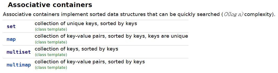 순서가 있는 컨테이너는 키를 기준으로 정렬하며 std::set, std::map, std::multiset, std::multimap이 있습니다.