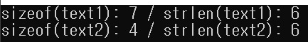 std::cout << "sizeof(text2): " << s3 << " / strlen(text2): " << s4 << std::endl;