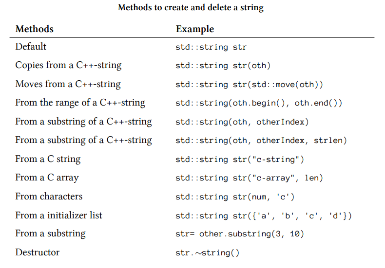 +) std::string의 생성과 삭제에는 다음의 방법들을 사용할 수 있습니다.