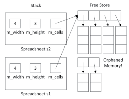 예를 들어, 다음의 코드를 살펴보겠습니다. 여기 나온 printSpreadsheet() 함수에 Spreadsheet 객체 s1을 전달하면 이 함수의 매개변수인 s를 초기화하는 과정에서 s1을 복사합니다.