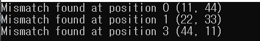 std::cout << "Mismatch found at position " << position << " ("