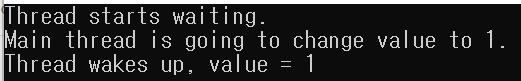 std::cout << "Thread wakes up, value = " << value << std::endl;