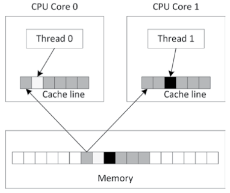 대부분 캐시(cache)는 캐시 라인(cache line) 단위로 처리됩니다. 최신 CPU는 흔히 64바이트 캐시 라인으로 구성됩니다. 캐시 라인에 데이터를 쓰려면 반드시 그 라인 전체에 락을 걸어야 합니다. 멀티 스레드 코드를 실행할 때 데이터 구조를 잘 만들지 않으면 캐시 라인에 락을 거는 과정에서 성능이 크게 떨어질 수 있습니다.