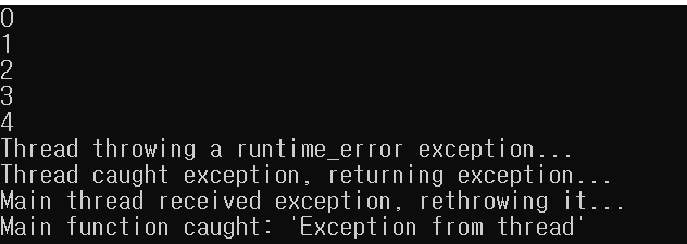 thread 클래스 생성자는 가변인수 템플릿이기 때문에 인수 개수를 원하는 만큼 지정할 수 있습니다. 첫 번째 인수는 새로 만들 스레드가 실행할 함수의 이름입니다. 그 뒤에 나오는 인수는 스레드가 구동되면서 실행할 함수에 전달할 인수들입니다.